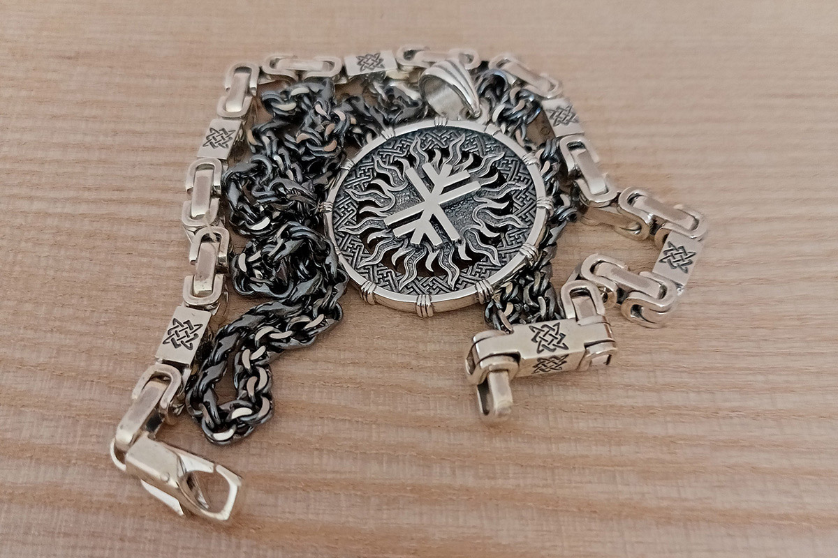 Алатырь с Солнцем (серебро с золотом), 30 мм