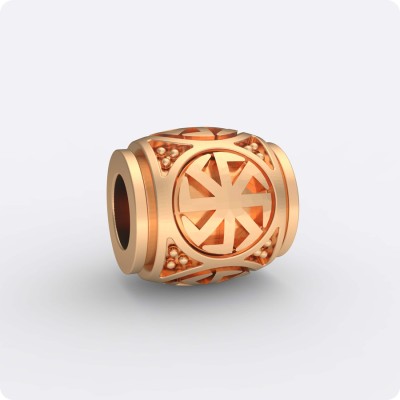 Шарм со знаком Коловрат из золота – отличный способ украсить кожаный браслет или серебряную цепочку на руку. Бусина с древнеславянским амулетом станет не только украшением, но и оберегом, который можно носить практически всем. Искусный шарм, выполненный в универсальном дизайне со славянским символом Коловрат, подойдет для мужских и женских браслетов – цепочек из серебра (можно с чернением) и кожаных шнурков.